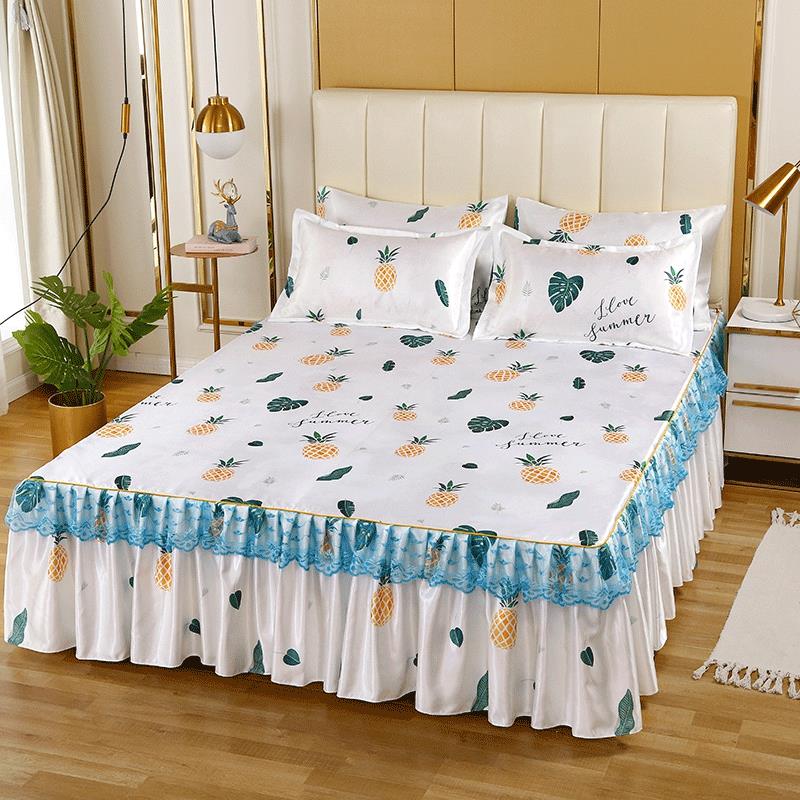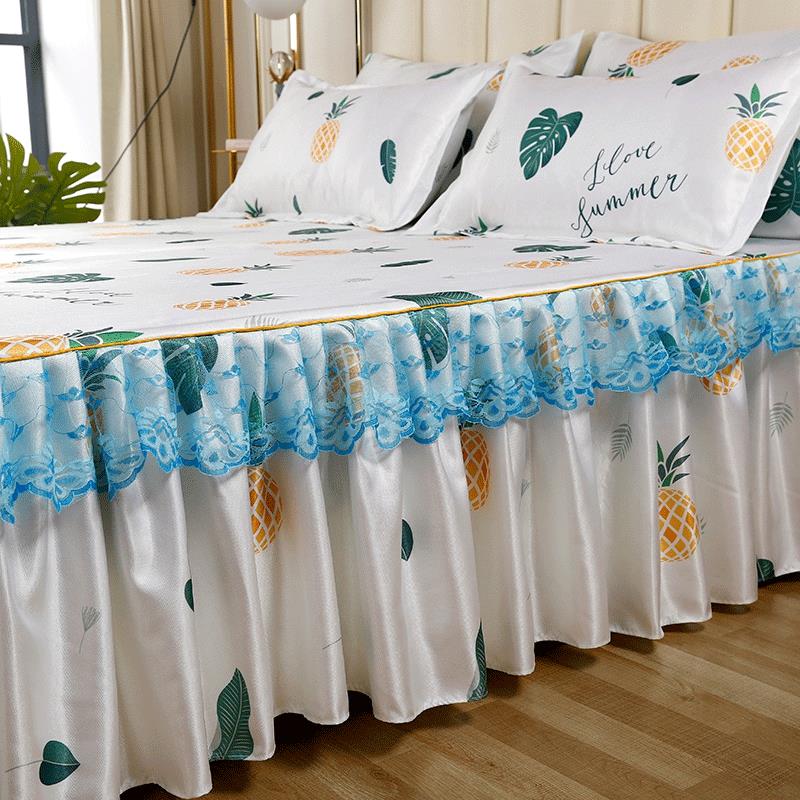印花蕾丝床裙款冰丝席凉席三件套【冰丝(聚酯纤维)/甜蜜菠萝】 |