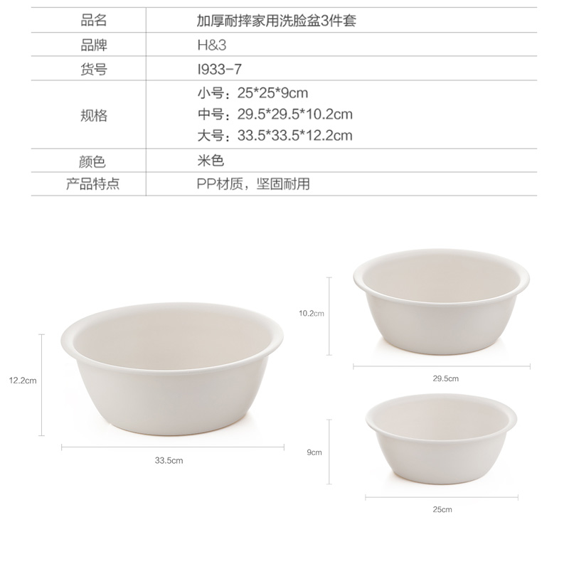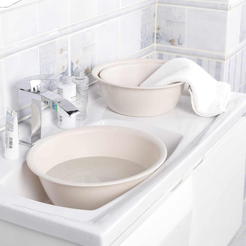 加厚耐摔家用洗脸盆塑料洗衣盆洗菜水盆3件套【PP/米色】 |