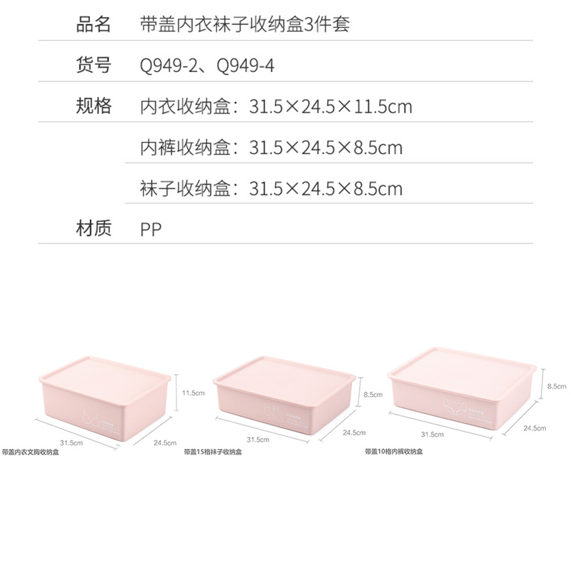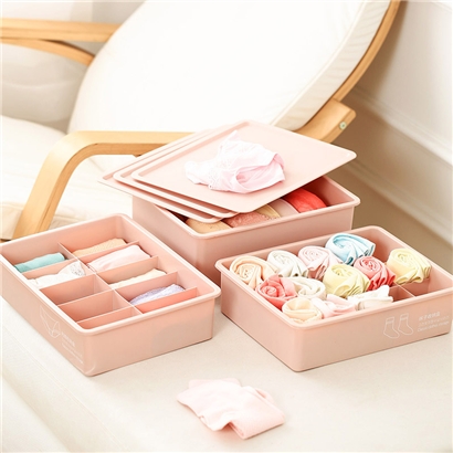 粉色带盖内衣袜子收纳盒3件套【PP/图片色】 |