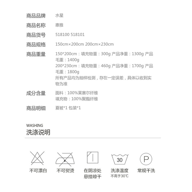 天丝蛋白夏被(夏被*1)【面料:100%莱赛尔纤维/惠雅天丝蛋白夏被】 |
