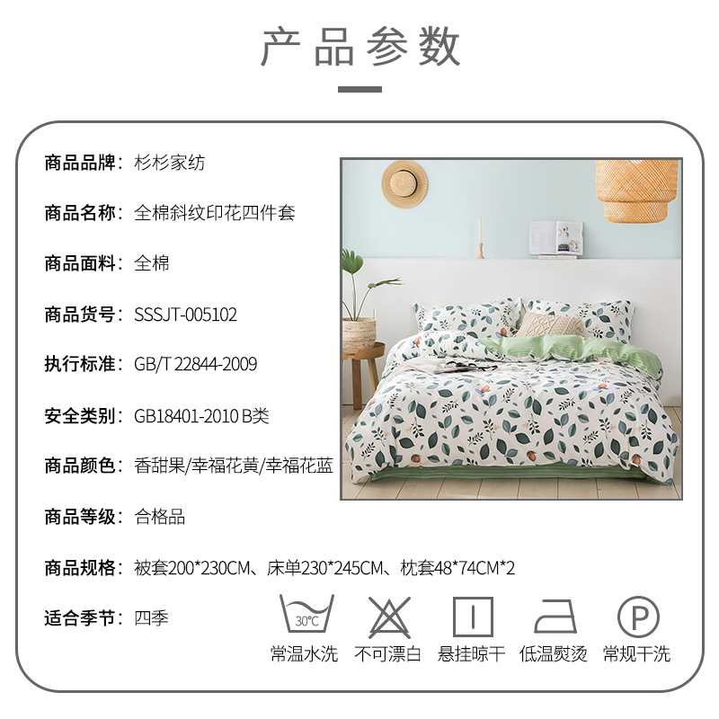 全棉斜纹印花四件套【全棉/颜色自选】 |