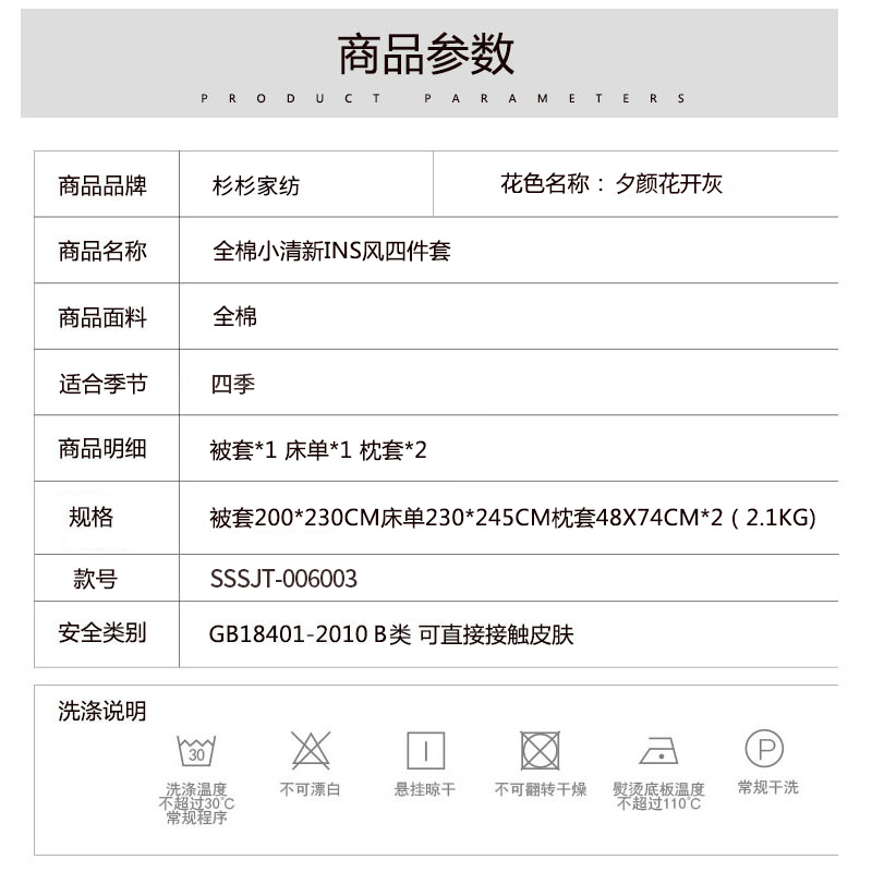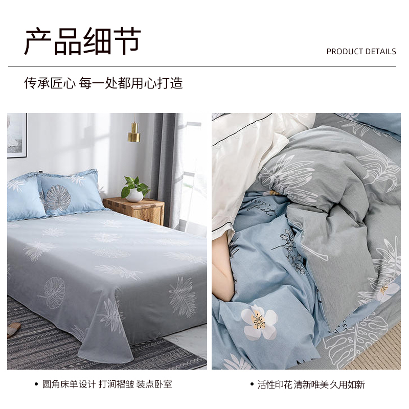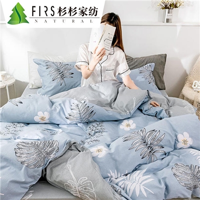 全棉小清新ins风四件套【全棉/夕颜花开灰】 |