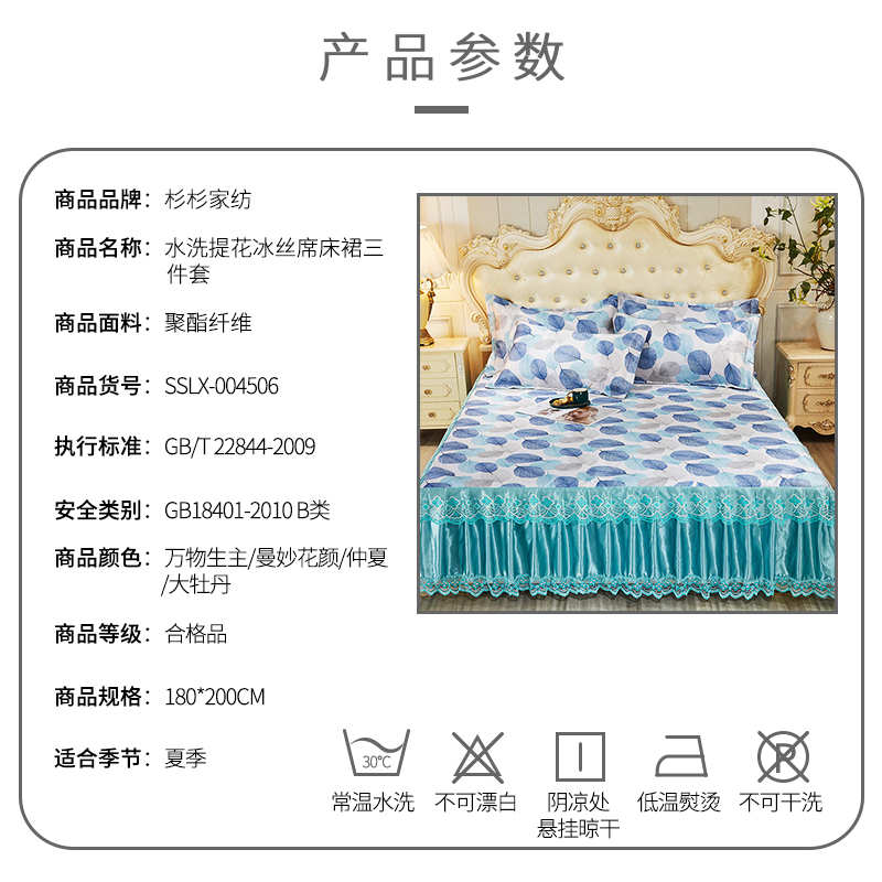 水洗提花冰丝席床裙三件套【聚酯纤维/颜色自选】 |