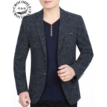 鳄鱼恤西服男秋季新款中年男士商务休闲小西装外套韩版修身单西爸爸装秋冬上衣 黑灰9833 170/M |