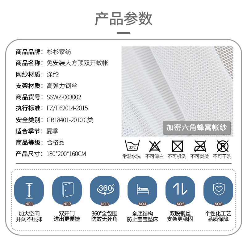 免安装大方顶双开蚊帐【支架材料:高弹力钢丝网纱材质:涤纶/颜色自选】 |