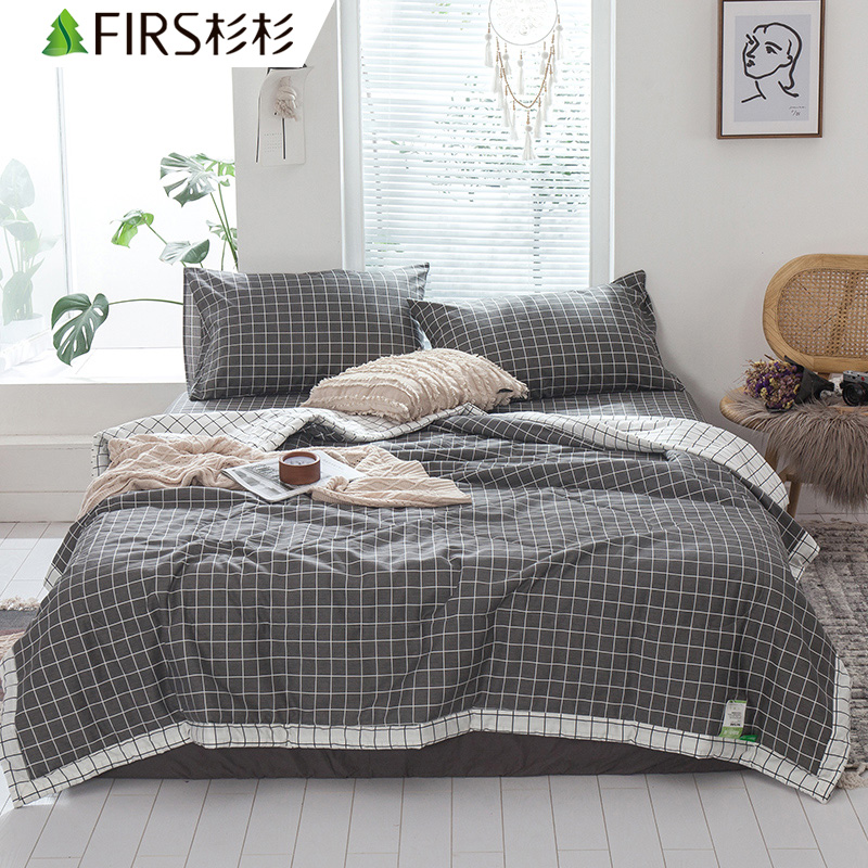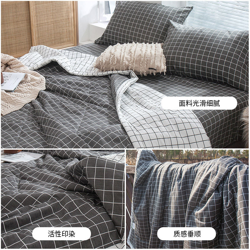 13070全棉夏被三件套【面料:纯棉填充:聚酯纤维/中灰格】 |