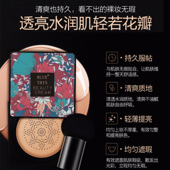 BLUETHIN蘑菇头气垫BB霜粉底液 持久保湿遮瑕不脱妆 防水防汗伪素颜 网红同款 自然色 |