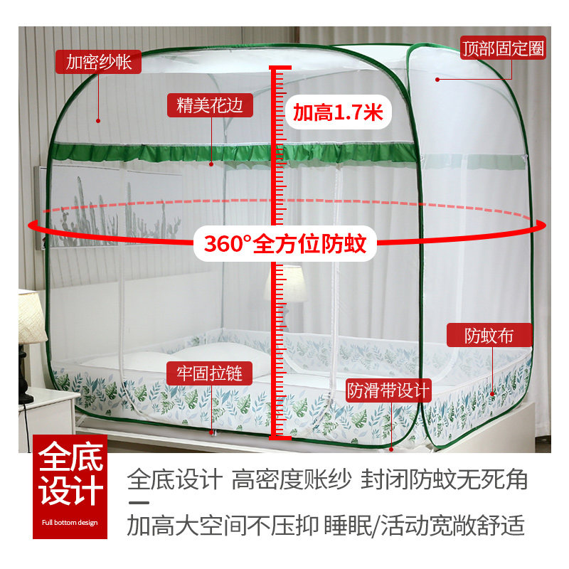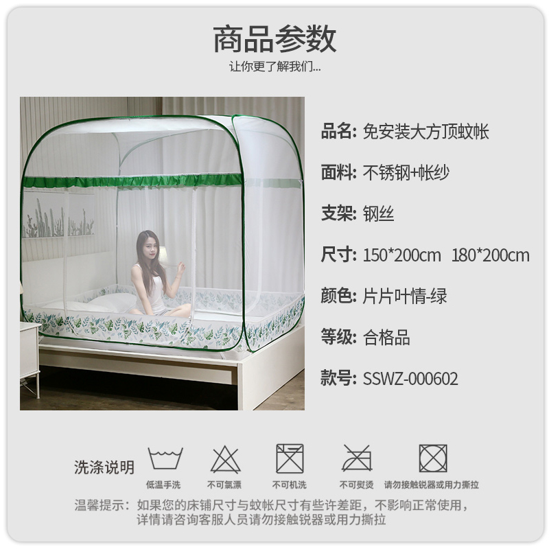 免安装大方顶蚊帐【不锈钢+帐纱/片片叶情-绿】 |