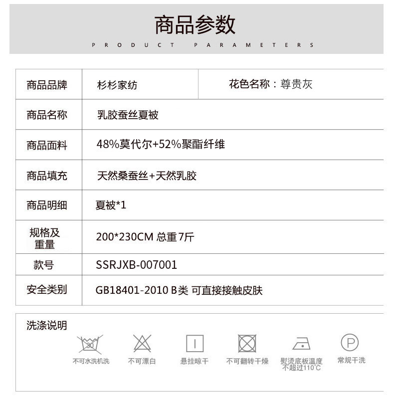 乳胶蚕丝夏被【面料:48%莫代尔52%聚酯纤维填充:天然桑蚕丝+天然乳胶/尊贵灰】 |