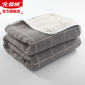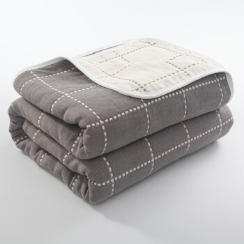 北极绒 毛巾被纯棉全棉空调被六层纱布巾夏凉被盖毯毯子儿童午睡毛毯婴幼儿纱布浴巾 虚线格灰 90*100cm |