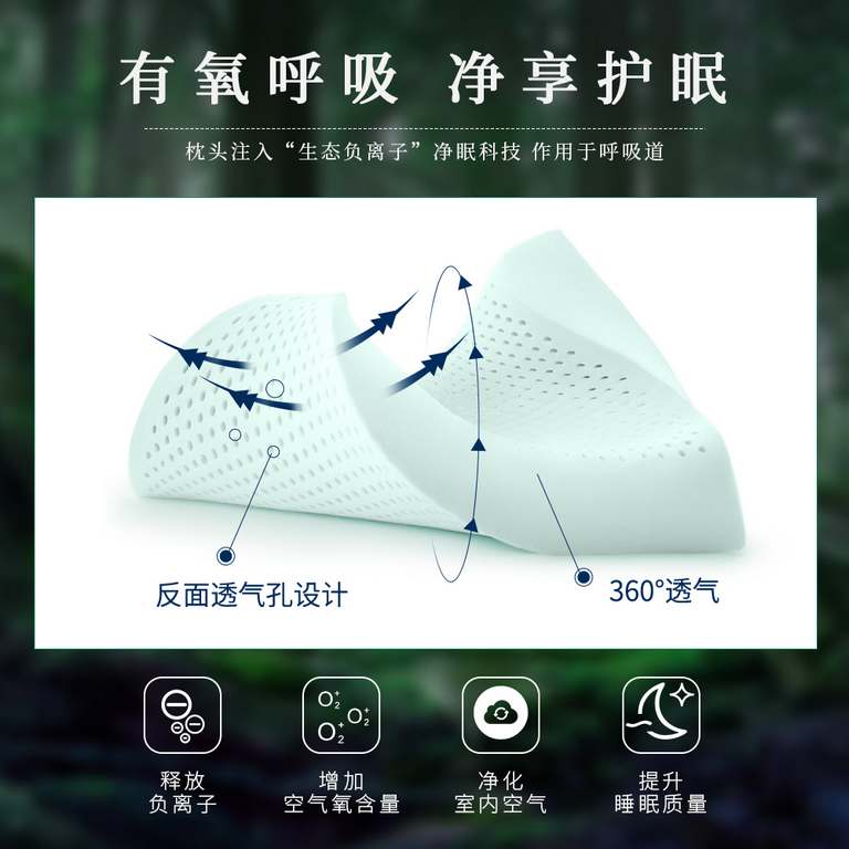 负离子高低平面枕(枕芯一只)【天然乳胶/淡绿色】 |