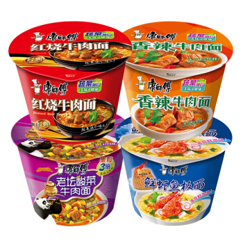 康师傅方便面开心桶红烧牛肉3桶+酸菜牛肉3桶+香辣牛肉3桶+鲜虾鱼板3桶桶面泡面整箱装休闲零食即食面 |