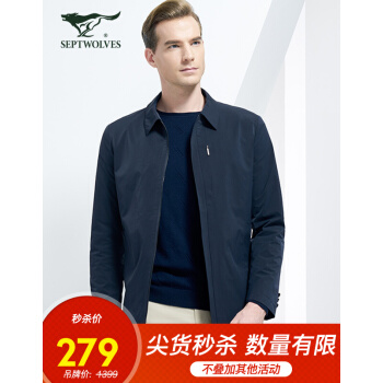 Q3七匹狼风衣 男装商务休闲纯色翻领中长款风衣外套 101(藏青) 175/92A/XL |