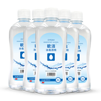 欧洁(oyeah)75%酒精500ml*5瓶 消毒酒精消毒液 |