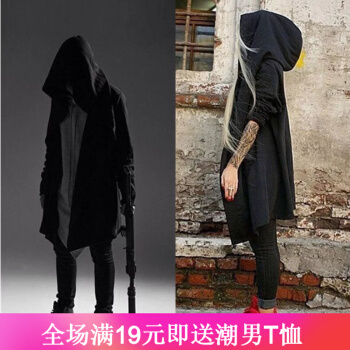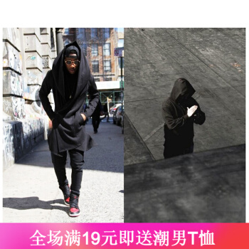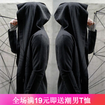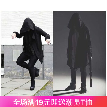 琛倪欧美暗黑巫师连帽暗黑系男装带帽斗篷中长款风衣外套披风长袍外套百搭衣服时尚潮流 黑色 XL |