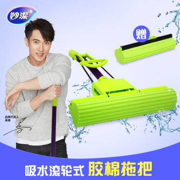 妙洁海绵拖把 家用办公室吸水墩布懒人免手洗自动胶棉托地板挤水式清洁伸缩长杆工具刮水神器 共2个替换头 |