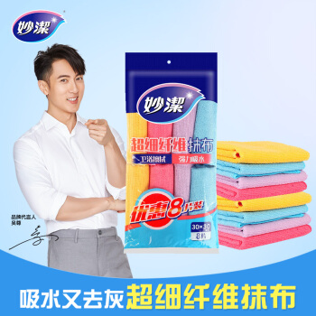 妙洁超细纤维抹布 清洁布厨房擦桌子巾玻璃杯地不掉毛吸水干净用品工具 8片装 |