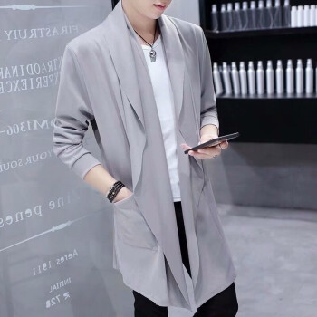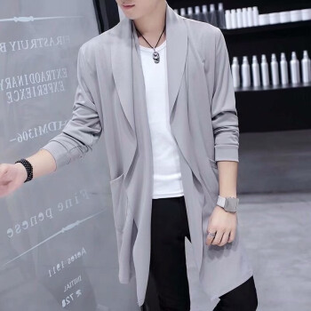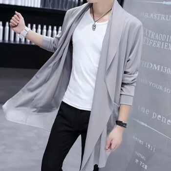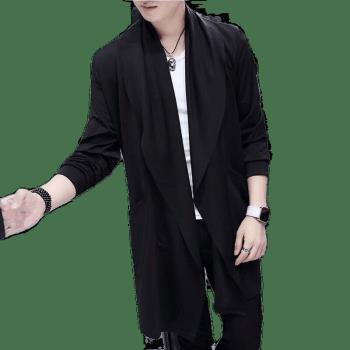 离梢夏季薄款冰丝连帽风衣男中长款春夏新款帅气韩版青年学生披风外套潮流防晒衣服 黑色 L |