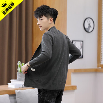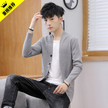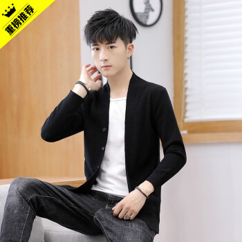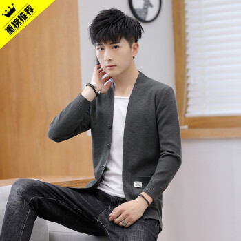 巴克龙秋装新款男士针织开衫秋天外穿V领针织衫毛衣纯色薄款休闲毛线衣薄外套修身精神小伙发型师潮装百搭 深灰色 M |