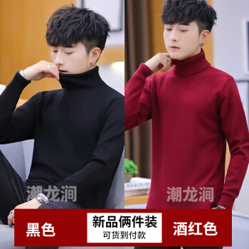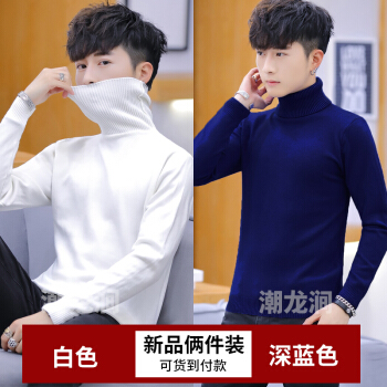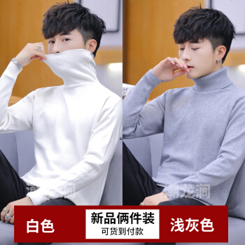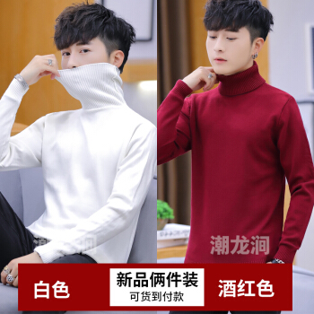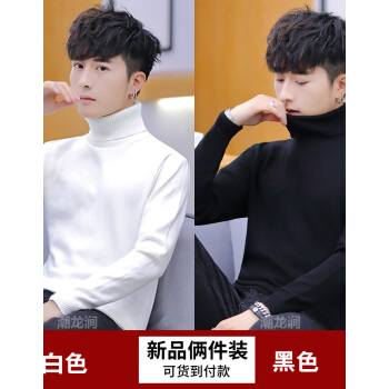 【超值 2件装】毛衣男冬季男士高领针织韩版修身打底衫特惠百搭线衣服男装城市前端杀秒 白色+黑色 XL |