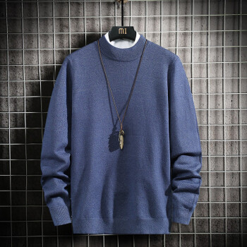 蓝缕金【LANLVJIN】毛衣男秋季新品宽松线衣男青年套头半高领针织衫纯色长袖体恤针织衫 墨绿色 |