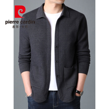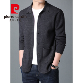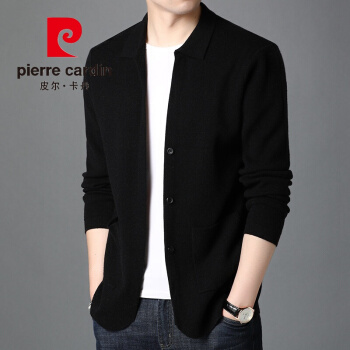 皮尔卡丹男装针织开衫男上衣服春装韩版潮流外穿针织衫休闲帅气毛衣薄外套针织新款针织 黑色 XL |