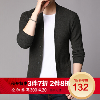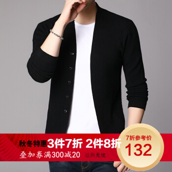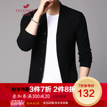 富贵鸟春秋男士针织衫开衫休闲V领薄款毛衣中年韩版修身打底外套男父亲节衣服 黑色 170/M 刑释毛衣 |