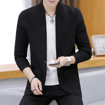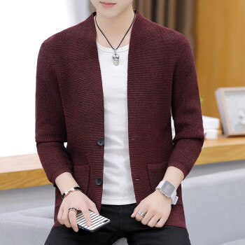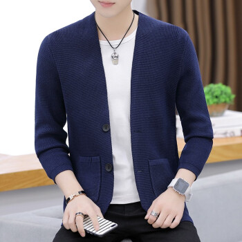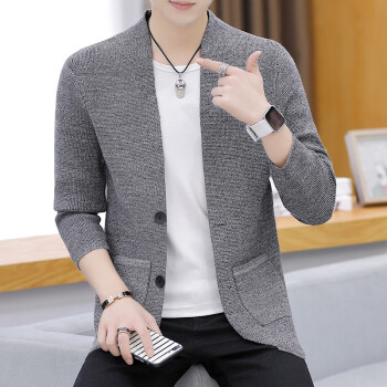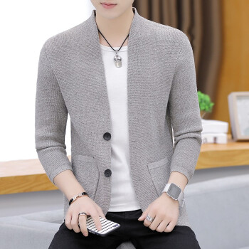 针织衫男士春秋季潮牌新款韩版修身休闲长袖纯色开衫毛衣潮流时尚百搭外套 Z8505 深灰色 XL |