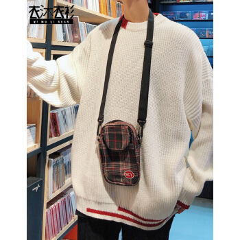 衣沐衣衫 秋冬毛衣男宽松外套韩版时尚撞色圆领休闲上衣学生毛线衣潮流文艺chic男生针织衫 白色 XL |