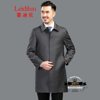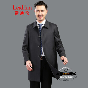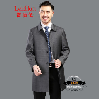 雷迪伦 秋季新款单排扣时尚翻领外套中老年男士纯色商务休闲男装爸爸风衣 暗格灰 185 |