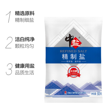 中盐 盐 无碘精制盐(未加碘) 无碘盐 细盐 500g 中盐出品 |