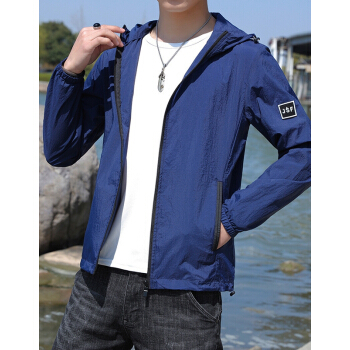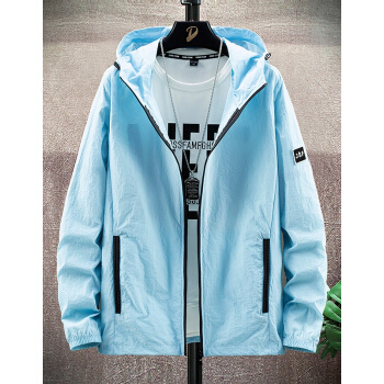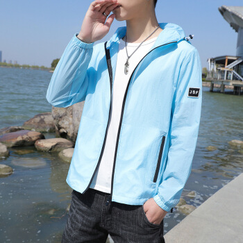 富贵鸟防晒服男夏季新款防晒衣男超薄透气连帽潮流薄款透气夏天大码外套衫青年男装钓鱼服皮肤衣 浅蓝 XL |