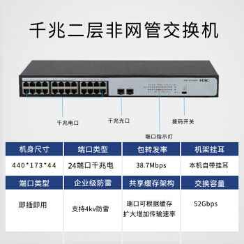 华三(H3C)24电口全千兆企业级交换机 二层非网管机架式网络交换器 2千兆光 S1324GF |