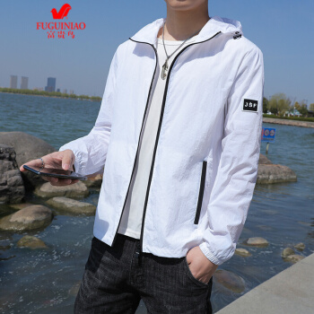 富贵鸟防晒衣男夏季新品超薄透气防晒服男装大码户外防紫外线速干外套夹克弹力皮肤衣垂钓服抗皱 白色 XL |