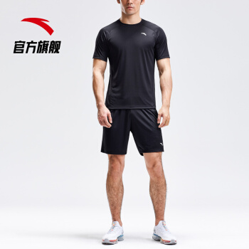 安踏 ANTA 官方旗舰运动套装男健身套装跑步套装足球套两件套短袖短裤套装 基础黑-4 L(男175) |