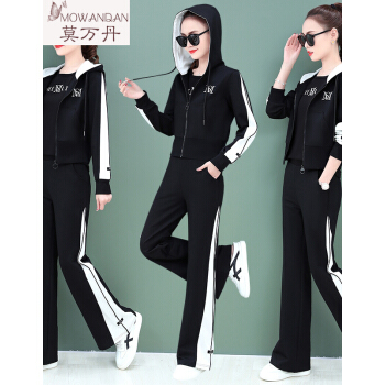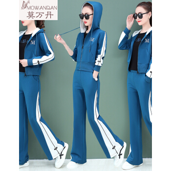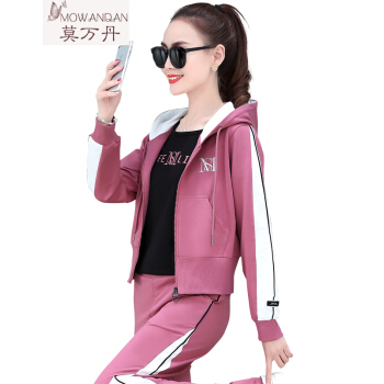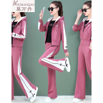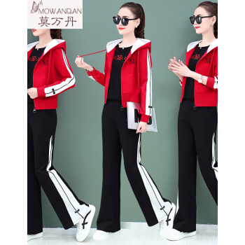 莫万丹高端新品卫衣女阔腿裤休闲运动套装女新款秋季韩版宽松洋气运动服三件套装MW9896 8813胭红 3XL |