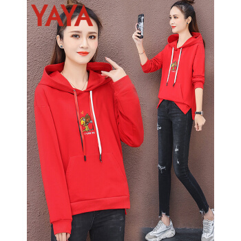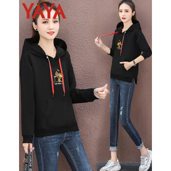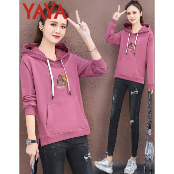 鸭鸭服饰yaya卫衣女韩版女装薄款长袖外套女上衣新款韩版宽松连帽衫秋装时 绿色 L |