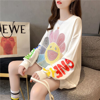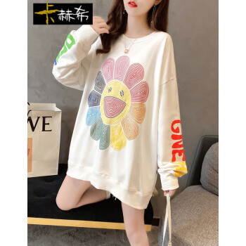 卡赫希卫衣女春秋季新款潮流时尚韩版宽松显瘦慵懒风卫衣女ins超火学生长袖上衣女2322 白色 请拍正确尺码 |
