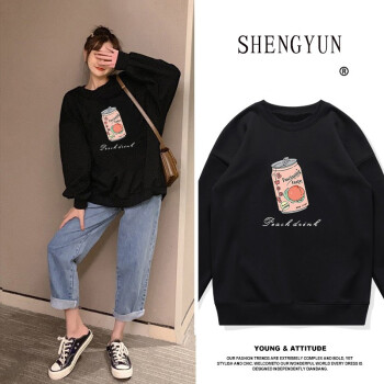 笙韵卫衣女宽松短款秋冬季新款薄款长袖t恤韩版宽松打底衫显瘦大码女装外套闺蜜装团体班服定制 黑色饮料薄款 M(建议95-110斤) |