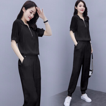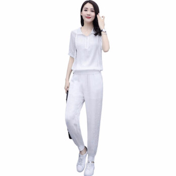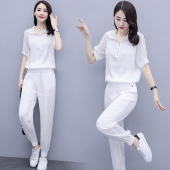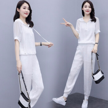 卿依瑟 卫衣套装女夏装新款减龄百搭薄款显瘦抽绳连帽纯色上衣卫衣女宽松大码九分裤两件套女潮 白色 M |