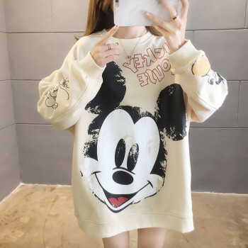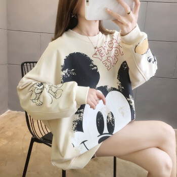 卡赫希卫衣女春秋季新款韩版慵懒风中长款米奇印花圆领长袖百搭休闲女学生上衣潮女5005 杏色 请拍正确尺码 |