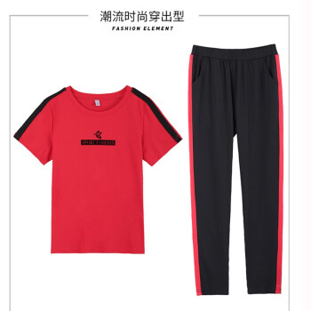 梓龄 运动套装女休闲裤女夏季新款圆领卫衣女T恤短袖长裤宽松显瘦洋气大码女装休闲套装女两件套 豆沙色 此码勿拍,请拍对应尺码 |