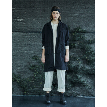 野无风衣男原创设计男装秋季新款男士工装翻领长款黑色风衣外套男 粗粝黑 M |