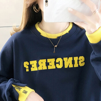 卡赫希卫衣女春秋季新款韩版宽松显瘦假两件女卫衣时尚百搭休闲ins潮学生上衣女5004 白色 请拍正确尺码 |