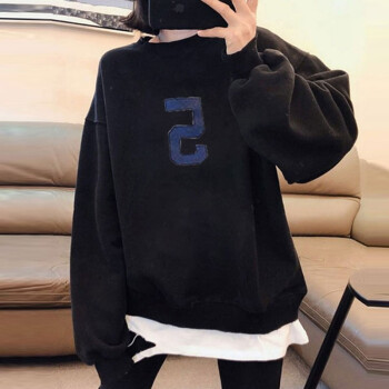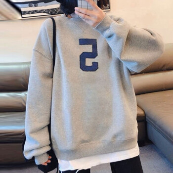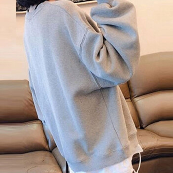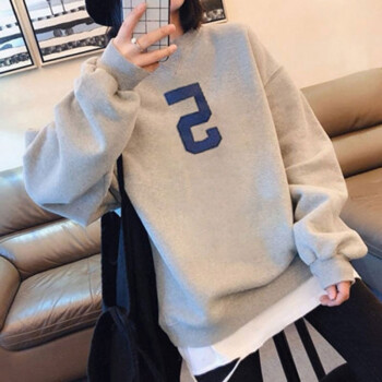萱蓝卫衣女宽松纯棉秋季新款原宿风减龄拼接长袖女装上衣中长款百搭外套潮2326 灰色 XL |