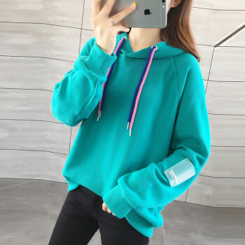 佬唐森连帽卫衣女秋冬季新款韩版短款宽松薄款大码女装长袖卫衣外套女 湖蓝色 请拍正确尺码 |
