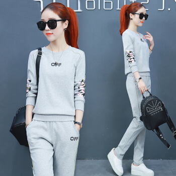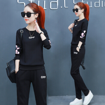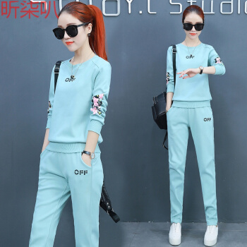 昕柒叭纯棉运动服套装女春季新款学生韩版宽松休闲卫衣两件套潮 蓝色 L(建议98~110斤) |