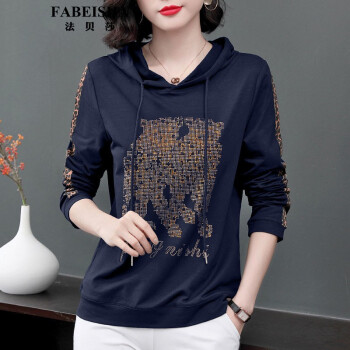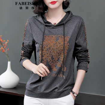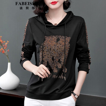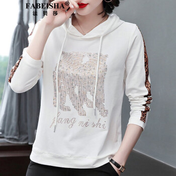 FABEISHA品牌卫衣女长袖秋季新款中年大码宽松休闲连帽上衣 白色 M |