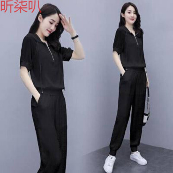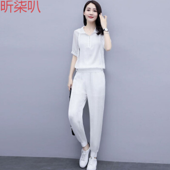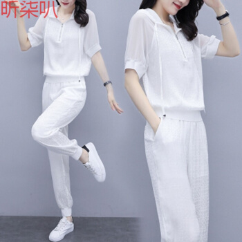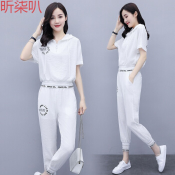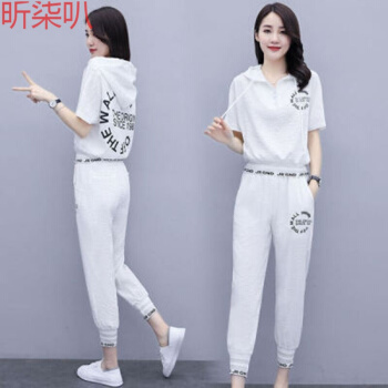 昕柒叭卫衣女减龄百搭显瘦抽绳连帽纯色上衣宽松大码九分裤两件套女 1117白 L |