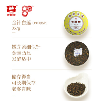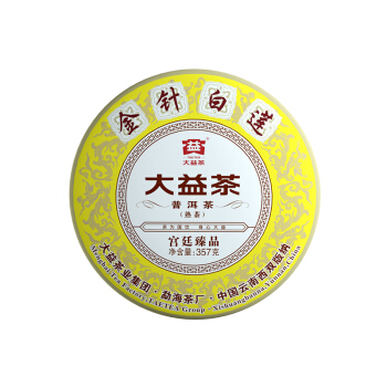 大益(TAETEA)普洱茶饼茶 中华老字号宫廷臻品熟茶 金针白莲七子饼茶357g 1901批次 |
